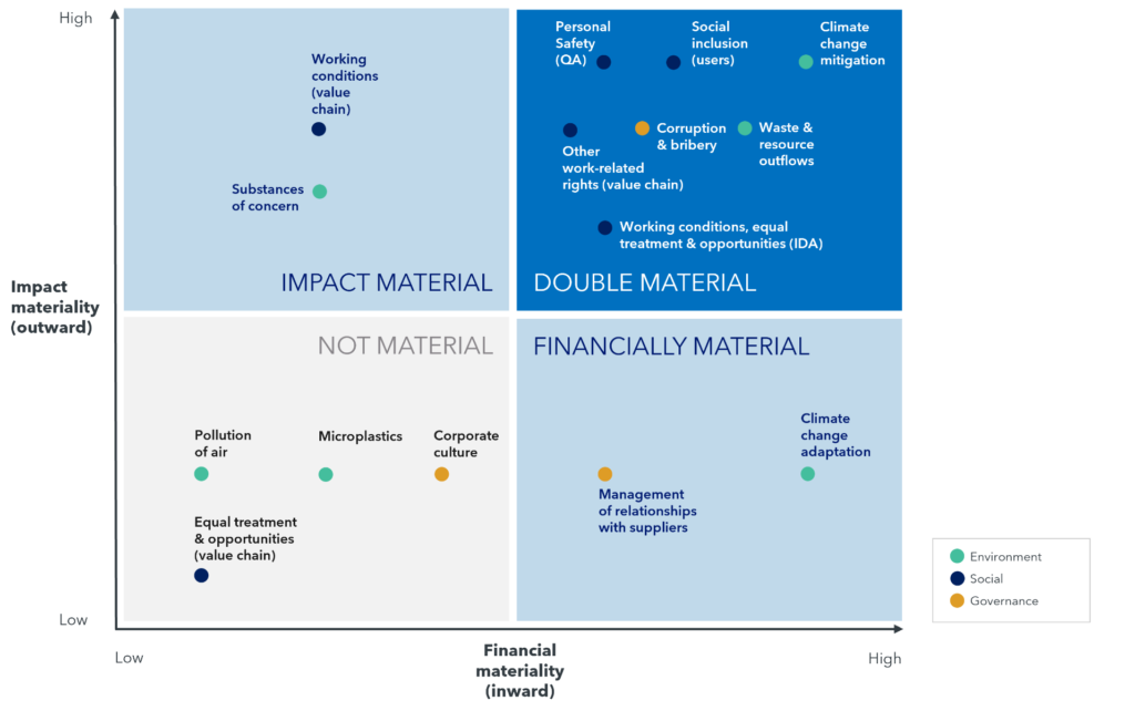 • Financial materiality (inward): how global sustainability developments affect IDA’s business.