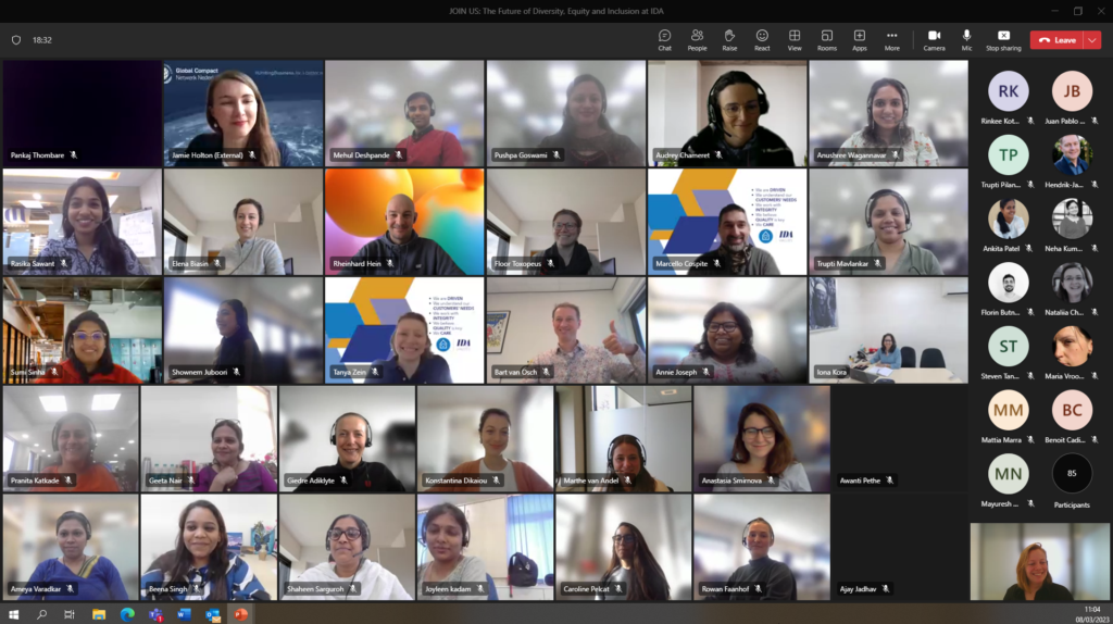 Today is International Women’s Day! For this special day, we organised a specific ‘Future of..’ session to discuss gender equality, as well as diversity, equity and inclusion (DEI). During these ‘Future of..’ sessions within IDA, we address different topics about our working culture, projects or partnerships. We take the opportunity to invite guest speakers and to learn more about other departments and ongoing projects. In today’s session, we were very happy to have Jamie Holton (Programme Manager Business & Human Rights and Gender Equality) from UN Global Compact Network Nederland as our guest speaker, to share more information on the tools and approaches of UN Global Compact and Women’s Empowerment Principles (WEPs). We also shared insights on (male) #allyship, unconscious bias and discussed paternal leave as a benefit to gender equality.